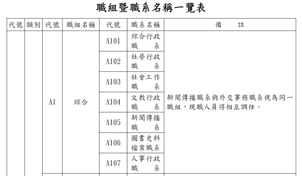 「新聞傳播職系與外交事務職系視為同一職組,現職人員得相互調任。」