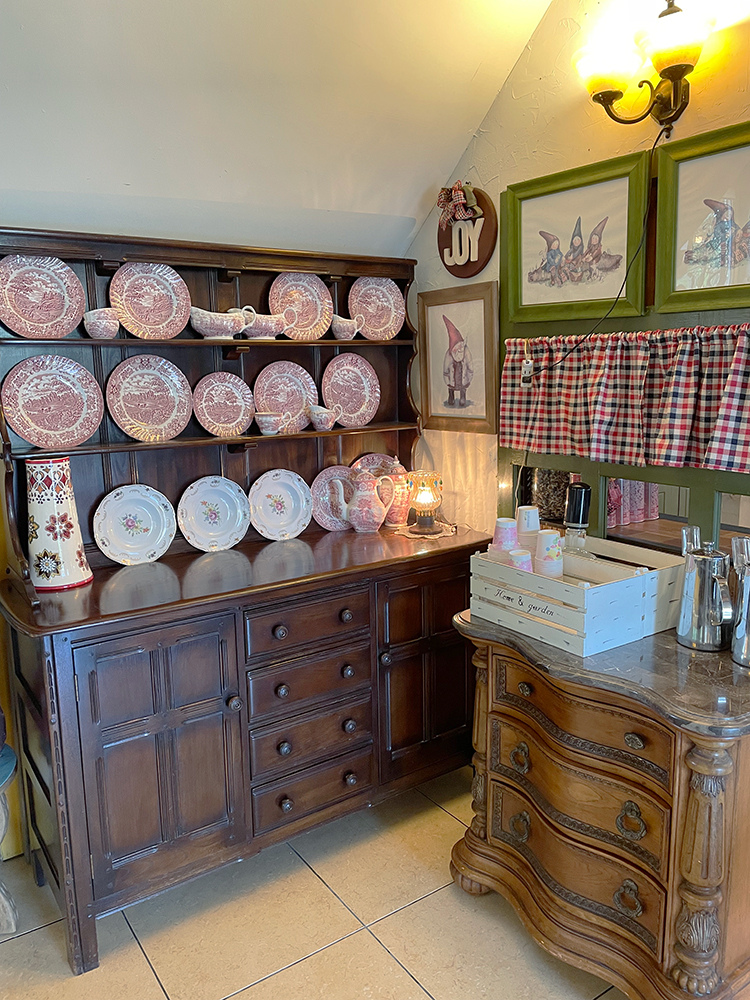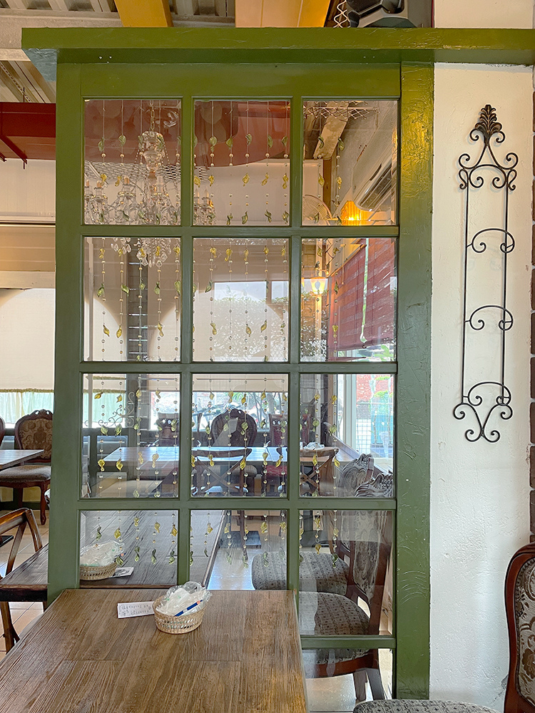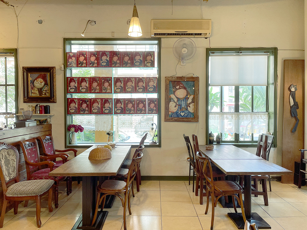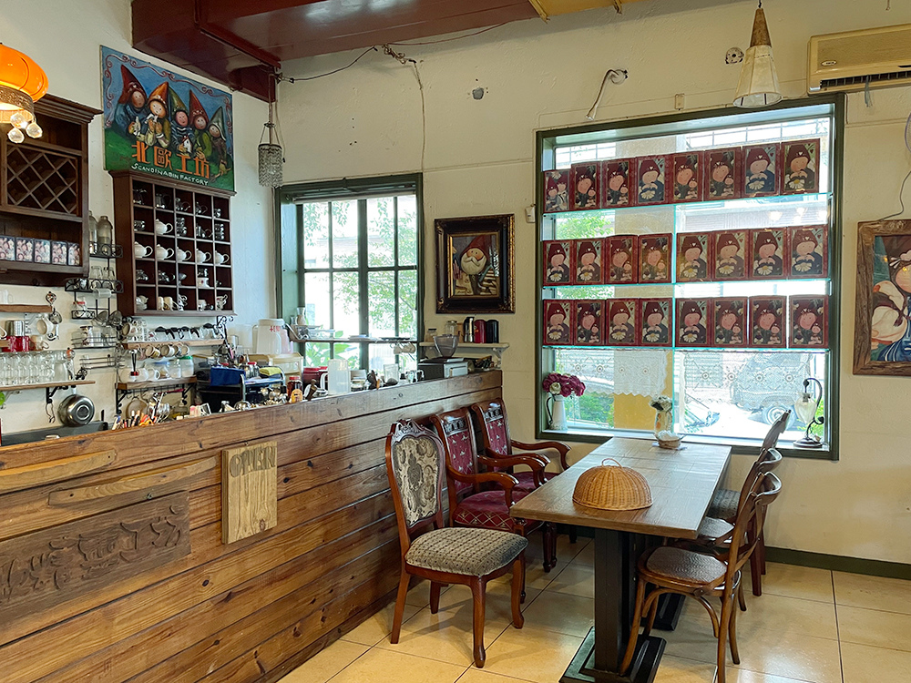 右邊的座位區及出餐吧檯,有不同種類的歐風桌椅,搭配起來溫馨可愛,牆上有許多荷蘭娃娃的圖像,過去因為是專賣店,店裡到處都是荷蘭娃娃,喜歡的客人就可以訂購,現在少了很多,成為餐廳佈置的一部分,這樣清爽用餐也很不錯。