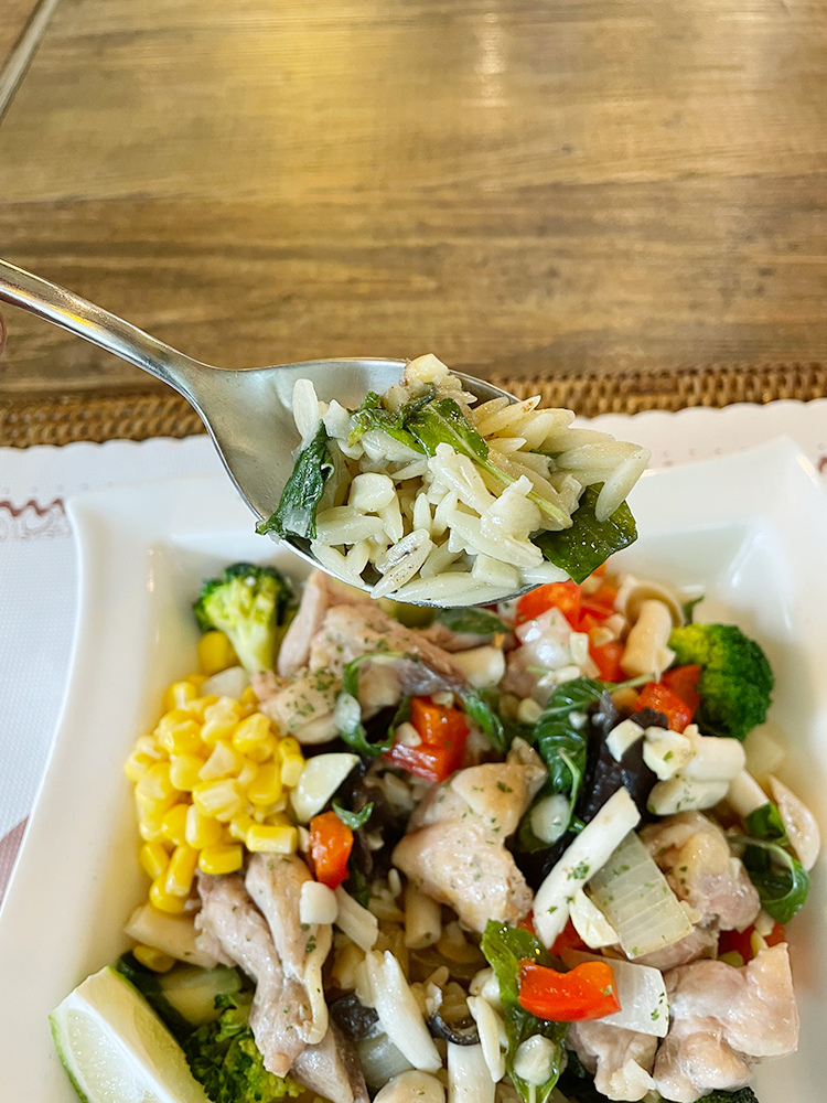 其實這裡的燉飯是使用米型的義大利麵,並不是真的米飯,吃起來很清爽,有淡淡的青醬調味,如果平常吃較重口味的朋友,可能會覺得過於清淡。