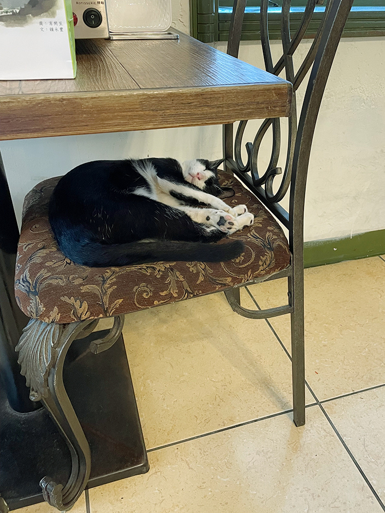 離開時終於看見店貓的身影,安穩的在椅子上睡覺呢!
